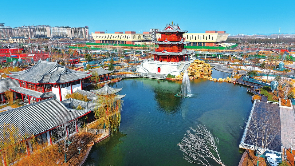 "原標(biāo)題:古意盎然12月13日,雪后初晴,侯馬市晉都公園空氣清新,碧波蕩漾,仿古建筑在藍(lán)天碧水的映襯下古意盎然,宛若一幅山水畫卷。" 古意盎然